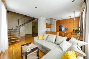 Современная двухуровневая квартира с панорамным видом и сауной — идеальный выбор для тех, кто ценит комфорт и стиль!
