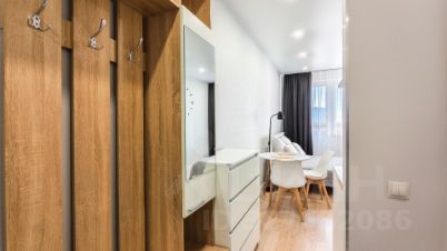 В коридоре разместилась прихожая с зеркалом, комод, платяной шкаф, роутер.