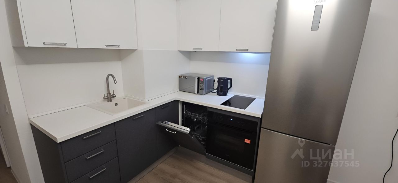 В квартире сделан свежий евроремонт, что создаёт атмосферу уюта и стиля. Совмещённый санузел оборудован современной душевой кабиной. На кухне и в комнате есть вся необходимая мебель и техника: холодильник, духовой шкаф, микроволновая печь, чайник, индукционная плита, посудомоечная и стиральная машины — всё новое.