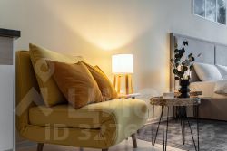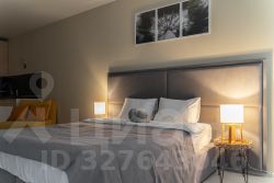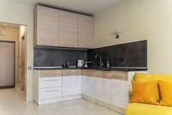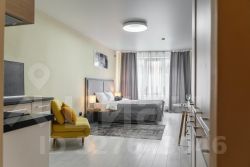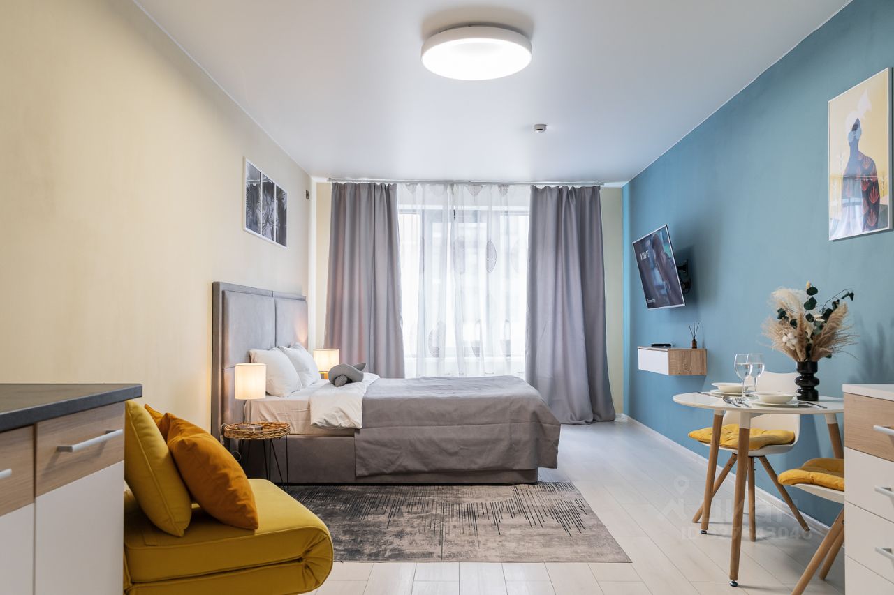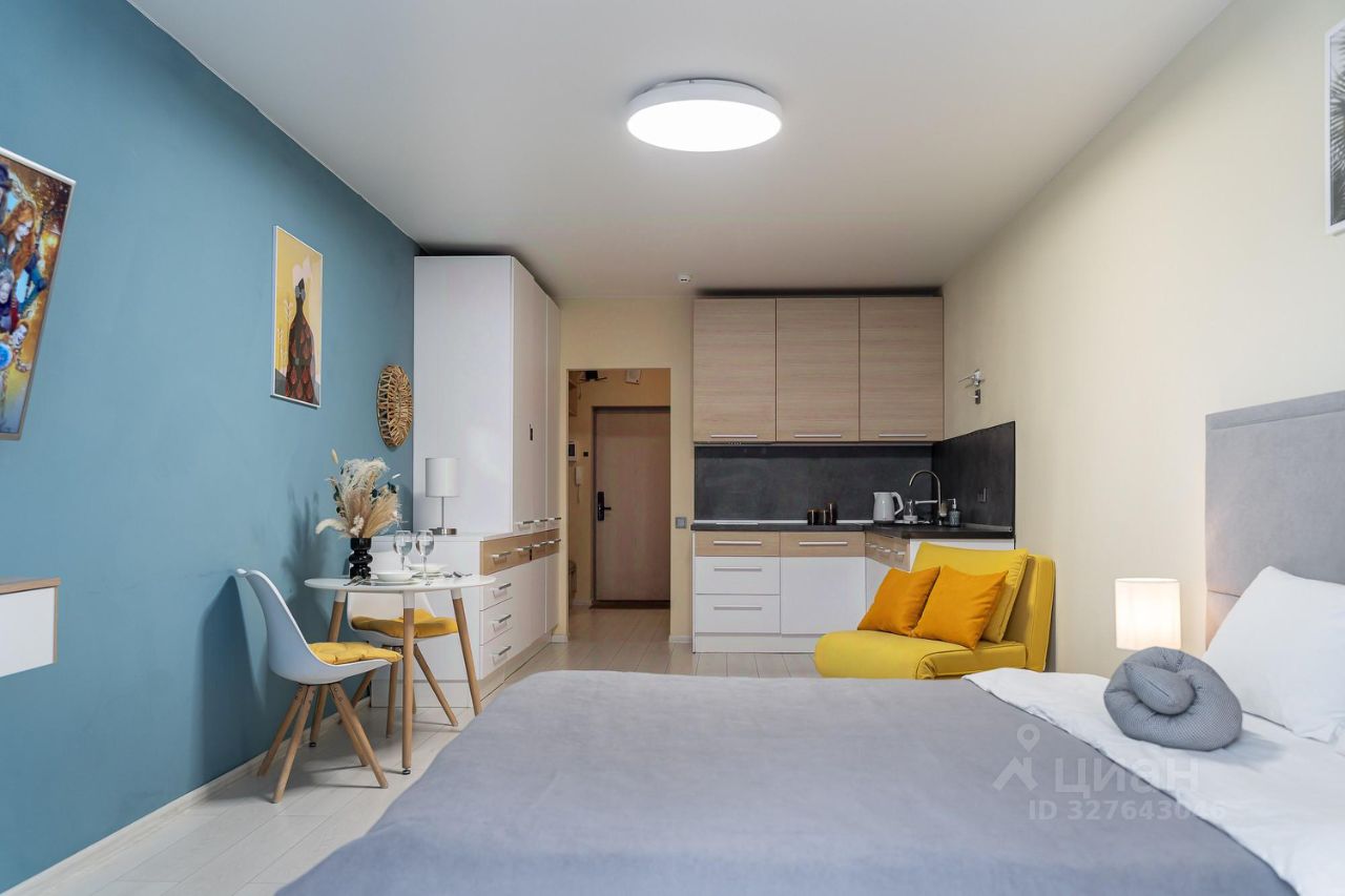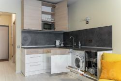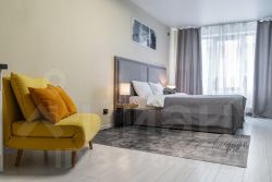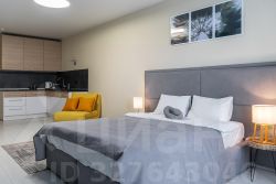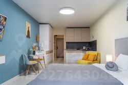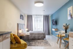 С удовольствием и комфортом разместим до 3-х гостей. В студии есть кровать и раскладное кресло. Кухня оборудована всей необходимой техникой и посудой не только для короткого, но и для длительного проживания. В ванной вас будут ждать косметические средства и свежие полотенца из прачечной. На кровати чистое постельное бельё.