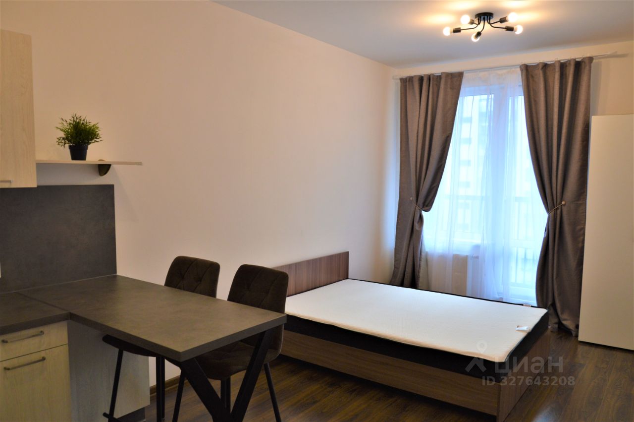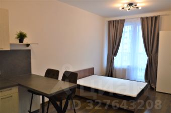 Студия укомплектована для комфортного проживания одного человека. Есть холодильник, вытяжка, плита, духовка, стиральная машина, шкафы, КРОВАТЬ для комфортного отдыха, теплый пол в санузле. Большой балкон.