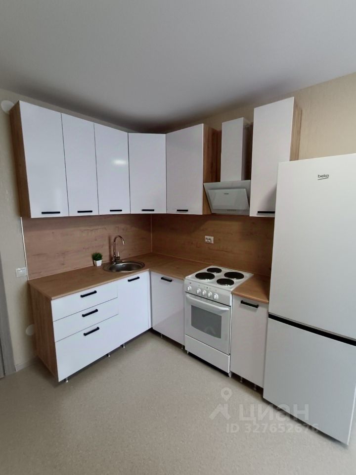 Комфортная кухня с мебелью и техникой.