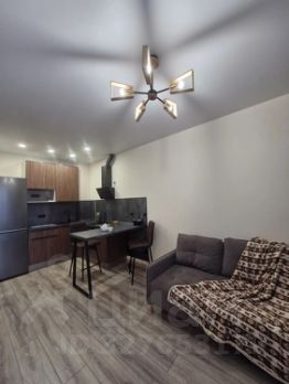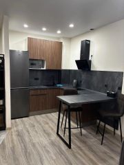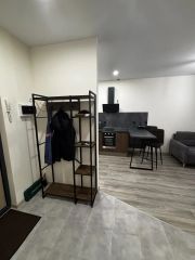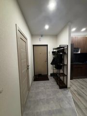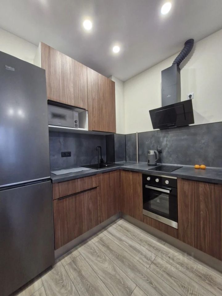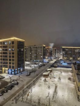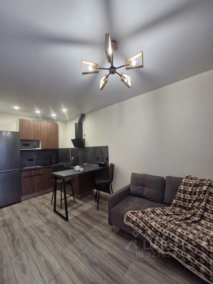 Большая кухня-гостиная оснащена кухонным гарнитуром с встроенной индукционной варочной панелью и духовым шкафом. Есть отдельностоящая микроволновая печь и вместительный холодильник. Имеется посуда для готовки. Диван раскладывается в полноценное двуспальное место для сна. Имеется большая лоджия с панорамным застеклением. Окна выходят на восточную сторону, на улицу. Под окнами детский сад, школа.