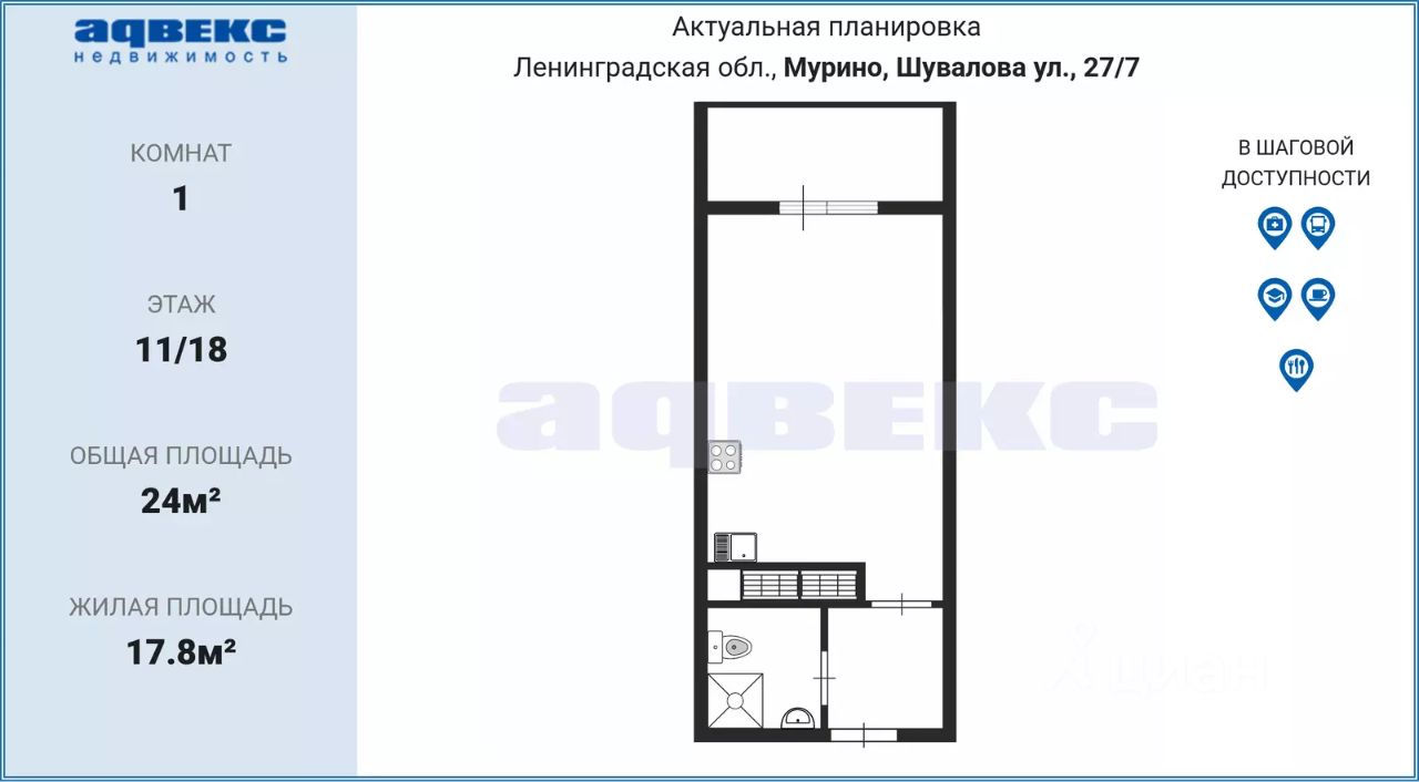 Дом находится в отличном состоянии, оснащен пассажирским и грузовым лифтами. Для владельцев автомобилей доступна подземная парковка, поэтому вопрос с местом для машины решен. Рядом с домом в ближайшее время открывается ТЦ "Небо", а также спортивный зал. В пяти минутах от дома - поликлиника, полицейский участок, стоматологические клиники. В пешей доступности также множество магазинов, также круглосуточных. В 20-ти минутах ходьбы находится еще один торговый центр, где есть все необходимое. Район отлично развит в плане инфраструктуры: рядом находятся школы, детские сады, разнообразные магазины. До метро Девяткино всего 5 минут на автомобиле, что делает передвижение по городу быстрым и удобным. Также до метро Девяткино можно добраться за 10-15 минут на общественном транспорте, остановка которого находится прям возле дома. От остановки отходит транспорт до метро Проспект Просвещения, также есть бесплатные автобусы в большую Ленту.