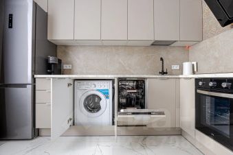 вся бытовая техника новая: стиральная и посудомоечная машины, духовка, варочная панель, вытяжка, микроволновая печь, холодильник;
