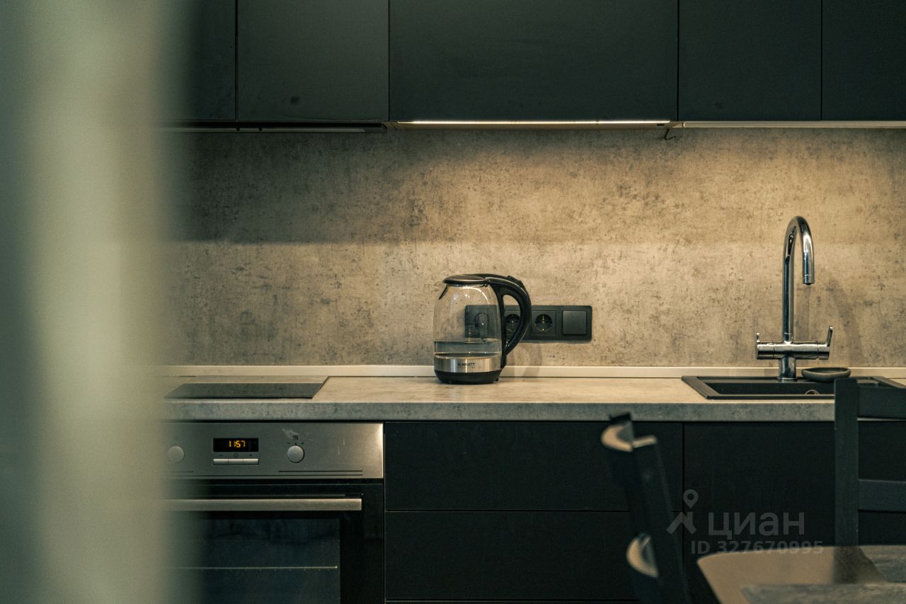 - оборудованная кухонная зона : шкафы, варочная панель на 2 конфорки( с режимом bооst), духовой шкаф, холодильник, набор посуды и приборов, микроволновая печь, электрический чайник, смеситель оборудованный фильтрами очисти воды