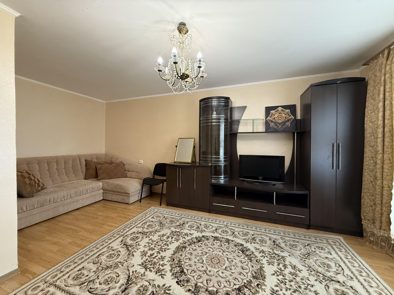 Спальные места: диван-кровать, кресло кровать и 1-спальный диван на кухне.