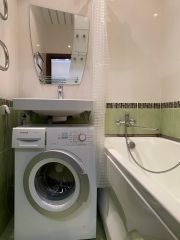 Просторная застекленная лоджия 5 квм с освещением, санузел раздельный в кафеле, бойлер 50л, фильтра, полы: ламинат, потолки 2.70.