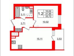 Площадь квартиры вместе с балконом 35,5 кв м. В квартире свежий ремонт.