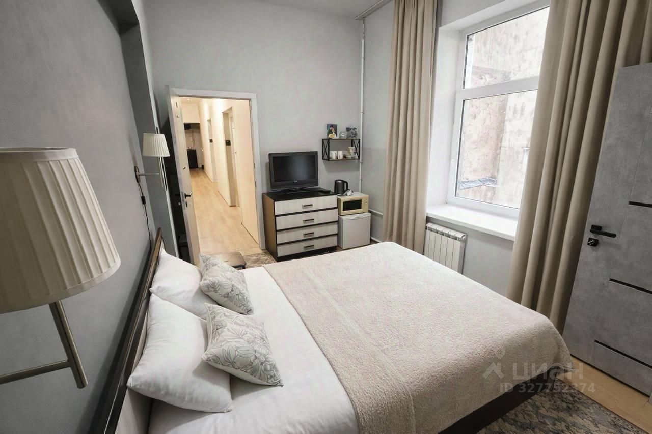 Комната полностью готова для комфортного проживания: удобная двуспальная кровать, места для хранения. Окна выходят в тихий двор.