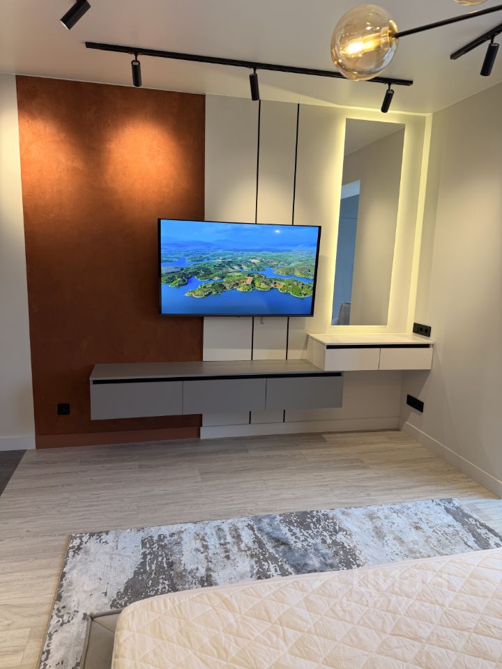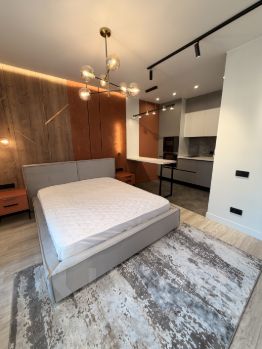 Квартира оформлена с дизайнерским ремонтом, в ней продумана каждая деталь. В студии есть всё необходимое для комфортного проживания: на кухне установлена мебель, холодильник и посудомоечная машина, духовой шкаф микроволновка. wi-fi 500 мб/с