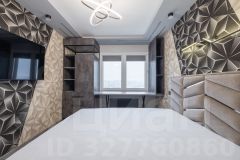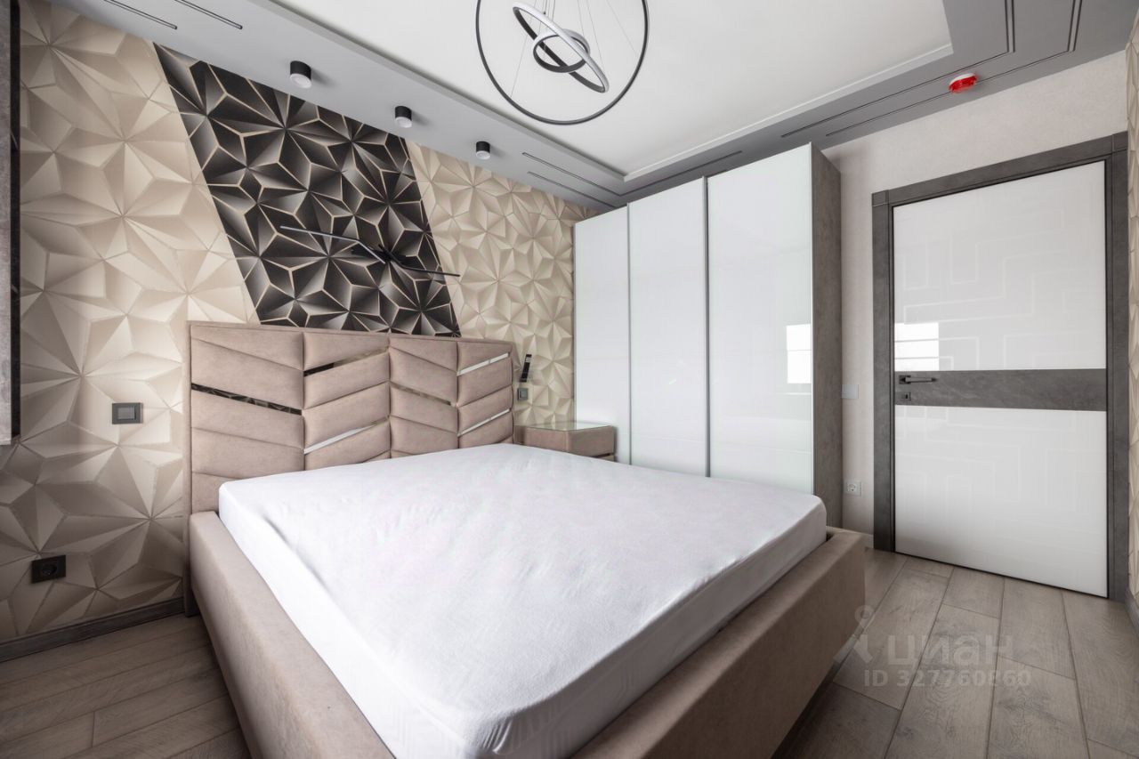 Двуспальная кровать с ортопедическим матрасом премиум-класса и на матрасником. В комплекте новые спальные принадлежности (подушки, одеяло). Рабочая зона, система хранения, телевизор 55 дюймов. Бесшумные приточно-вытяжные клапаны обеспечивают свежий воздух при закрытых окнах (также установлен в гостиной). Продумана система освещения.