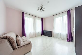 Большое преимущество квартиры - огромные окна, которые наполняют пространство естественным светом. Окна есть в каждом помещении, даже в санузле - редкое и приятное решение, создающее ощущение простора и воздуха.