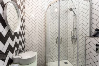 собственная ванная комната с душем и туалетом и мини-кухня, в которой есть плита, холодильник, микроволновая печь, чайник, вся необходимая посуда и столовые принадлежности. Большая двуспальная кровать и кресло-кровать, небольшая гардеробная. Постельное бельё и полотенца предоставляются.