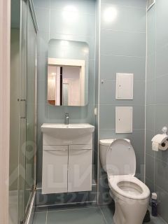 В прихожей встроенный шкаф для хранения вещей. Также в прихожей и санузле установлен тёплый пол. Санузел совмещенный, оборудован душевой кабиной, мойкой с тумбой, вместительным стеллажом.