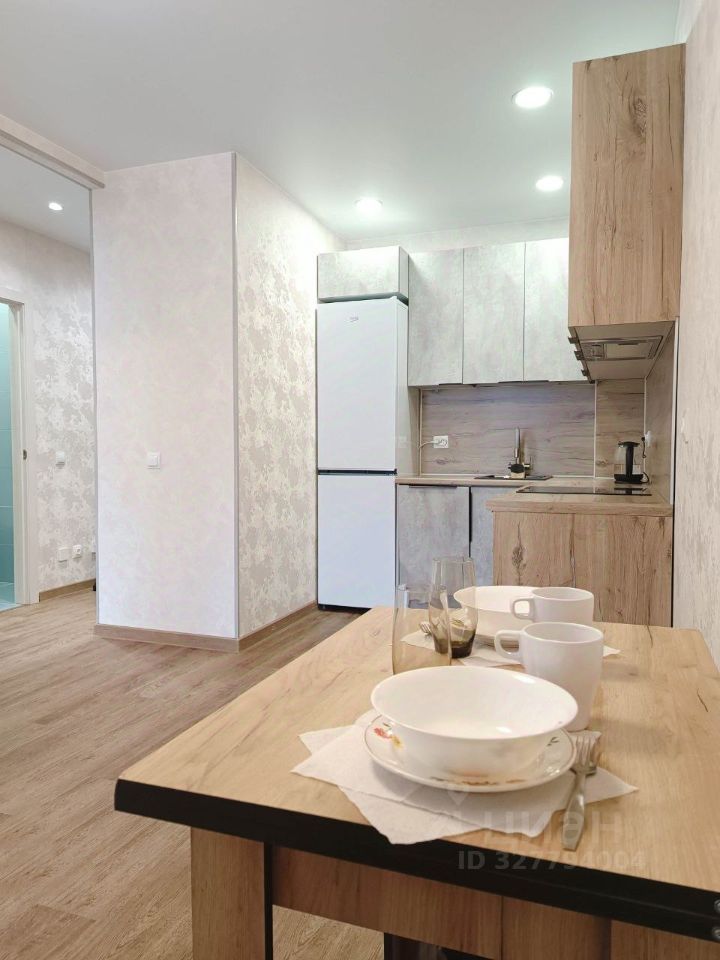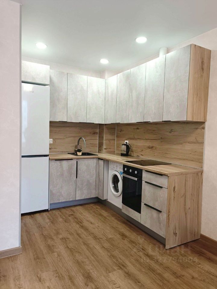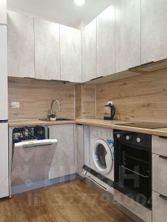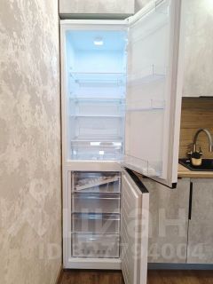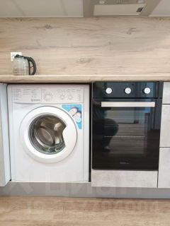 В квартире выполнен свежий евро ремонт, в просторной кухне-гостиной (14м) установлена функциональная кухня со всей новой необходимой техникой (холодильник, варочная поверхность, духовка, посудомоечная машина, чайник, вытяжка). Также, в кухне имеется минимальный набор посуды, раскладной обеденный стол, 2 табурета.