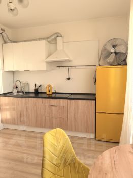 Площадь 38,2 м²: кухня ~12 м², балкон, солнечная сторона. Стильный ремонт для себя с жёлтыми акцентами — светло и уютно.