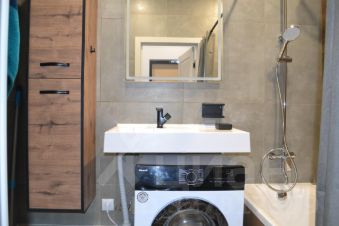 Удобная планировка: спальня-гостиная и кухня идеально зонированы, совмещенный санузел с ванной и стиральной машиной, коридор, прекрасная лоджия.