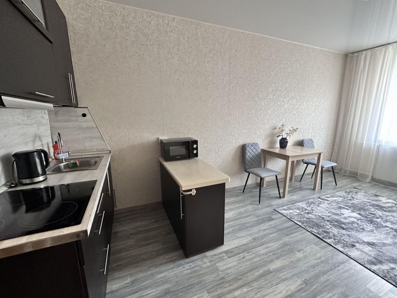 В квартире сделан косметический ремонт. Для вашего удобства есть вся необходимая мебель как на кухне, так и в комнате. Из техники в вашем распоряжении холодильник и стиральная машина, холодильник, печь свч. Санузел совмещённый, с душевой кабиной. Из окон открывается вид на улицу, а на лоджии можно приятно проводить время.