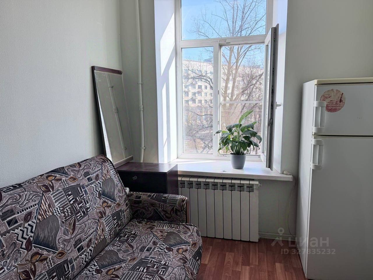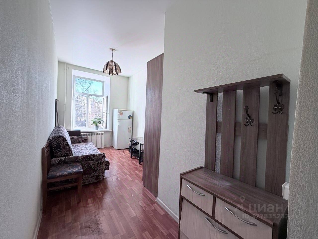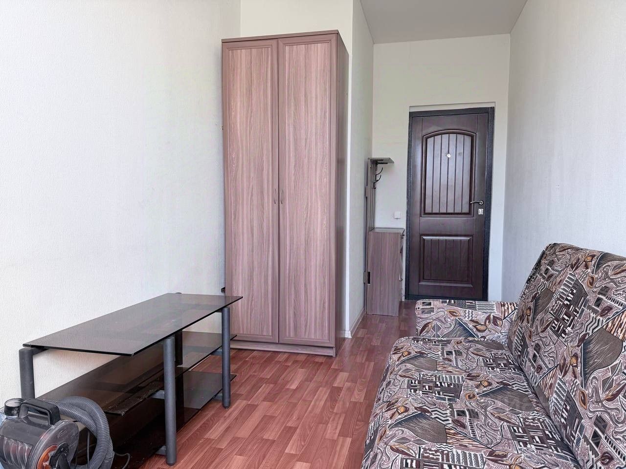 В комнате диван, холодильник, шкаф.