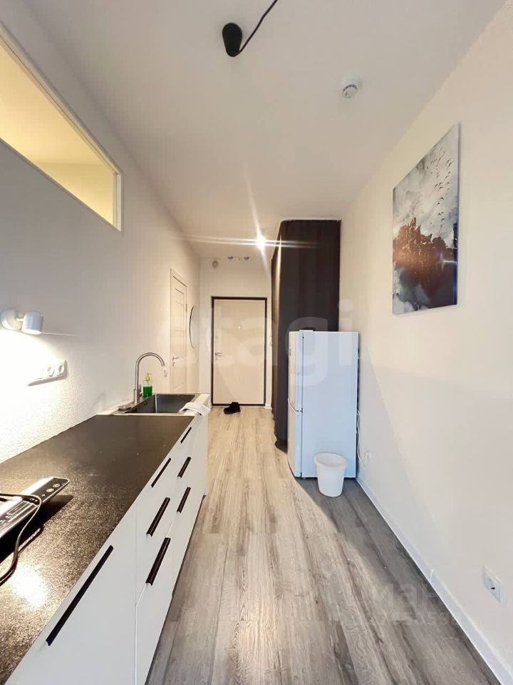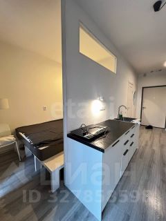 Пространство организовано по принципу студии с выделенной спальной зоной, отделенной от кухонного блока и прихожей, что обеспечивает приватность.