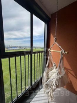 Просторный балкон превращен в уютную зону отдыха с гамаком. Квартира полностью укомплектована, включая текстиль и аксессуары, и готова к заселению.