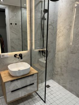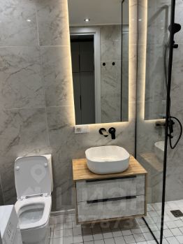 В квартире сделан евроремонт — стильный и современный. Комната и кухня полностью меблированы, поэтому можно сразу заехать и жить с комфортом. Из техники есть всё необходимое: кондиционер, холодильник, телевизор и стиральная машина. В ванной комнате установлена душевая кабина.