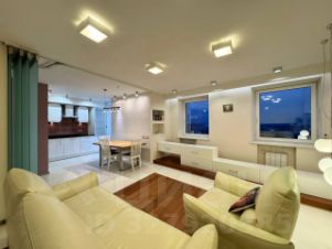 В квартире выполнен евроремонт из качественных материалов с индивидуальным дизайном. Есть вся необходимая мебель и бытовая техника (посудомойки нет).