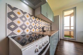 -Электрическая плита, чайник, духовка, микроволновая печь, холодильник, посуда и столовые приборы