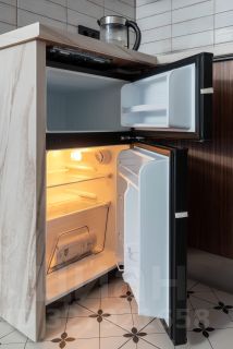 Есть всё, чтобы приготовить завтрак: плита, микроволновка, чайник, посуда. Уютный диван раскладывается для двоих, напротив большой телевизор.