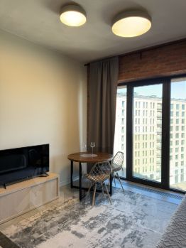 Уютная 2-комнатная квартира с евроремонтом в современном монолитном доме, построенном в 2017 году. Общая площадь составляет 40 кв. м, из которых 30 кв. м — жилая. Квартира расположена на 9 этаже 11-этажного здания. Высокие потолки (3.5 метра) создают ощущение простора. Окна выходят во двор, что обеспечивает тишину и уединение.