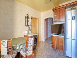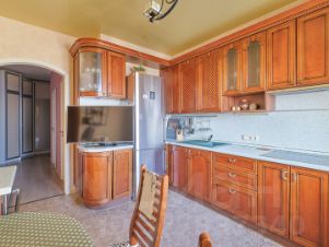 Мебель: В наличии три вместительных шкафа-купе для хранения вещей. Двухспальная кровать. Диван с полноценным спальным местом. Кухня оборудована всем необходимым, есть базовый набор посуды.