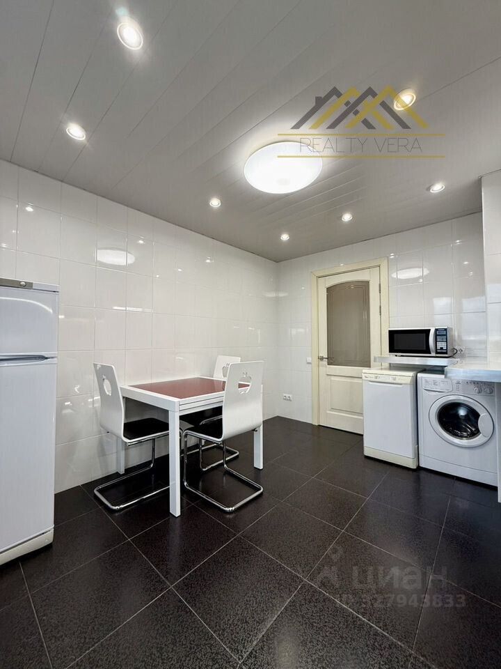 - Кухня: холодильник, посудомоечная машина, варочная поверхность, микроволновая печь, чайник, обеденный стол и стулья.