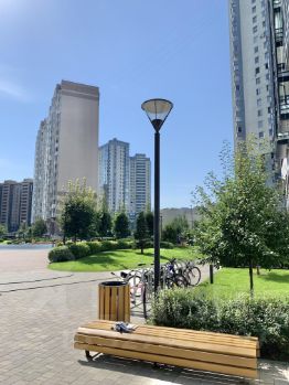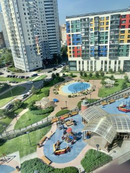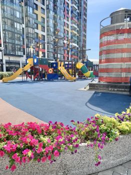 Благоустроенный зелёный двор, детская площадка, стилизованная под курортный пейзаж с бассейном, газоны в цветах- Все, что необходимо для комфортного проживания либо в пешей доступности либо находится на первых этажах комплекса (школы, детские сады, развивавшемся, школы танцев, магазины, рестораны, кафешки, банки, салоны Красоты, фитнес центр и т.д.)