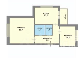 Площадь квартиры: общая 51,3 м2, жилая 26,9, кухня 13,2, санузел раздельный. Окна выходят на 3 стороны.
