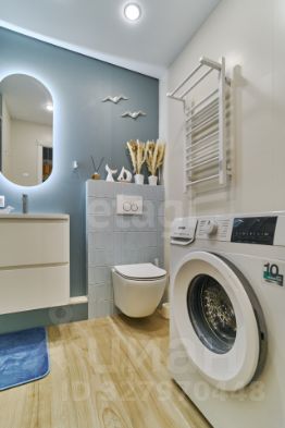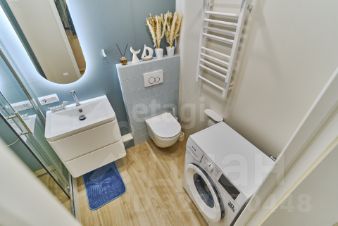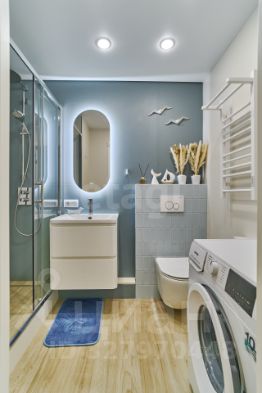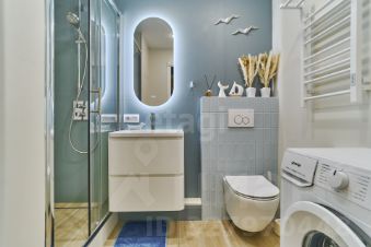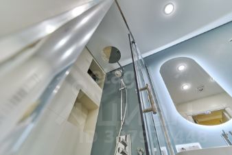 Санузле не менее уютны. Сделана удобная душевая. Зеркало на раковиной имеет не только подсветку, но и подогрев. Пол также сделано с подогревом