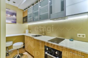 К кухне были приложены не только умелые руки, но и душа. При своей площади в ней есть: посудомоечная машина, варочная панель, микроволновая печь, духовой шкаф, вытяжка, много места для хранения. Также было продумано несколько вариаций подсветки для удобства и под настроение.