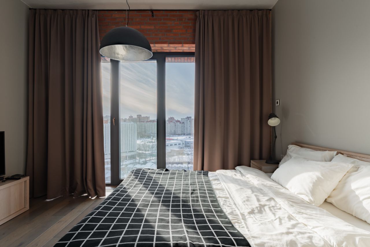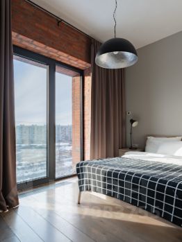 Апартаменты находятся на Васильевском острове в современном комплексе Docklands, выполнены в стиле лофт с частичной видом на Неву, Лахта-центр, Стадион "Санкт-Петербург". Панорамные окна. Высота потолков 3,1 м. Апартаменты оборудованы кухней-гостиной с раскладным диваном, спальней с гардеробной. Wi-Fi, кабельное