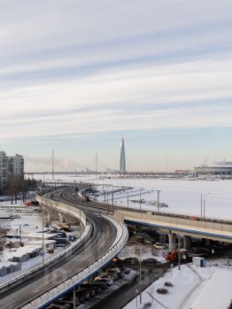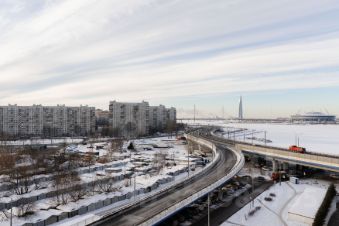 Рядом гипер-маркет "Лента". Метро "Приморская" в пешей доступности. В нескольких минутах съезд и заезд на ЗСД, На автомобиле до Эрмитажа 15 минут, до аэропорта "Пулково" 30 минут. Дополнительно есть возможность аренды паркинг места в подземном паркинге.