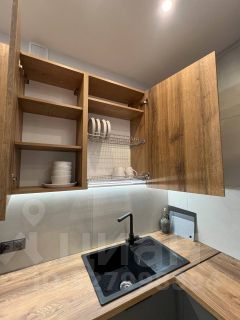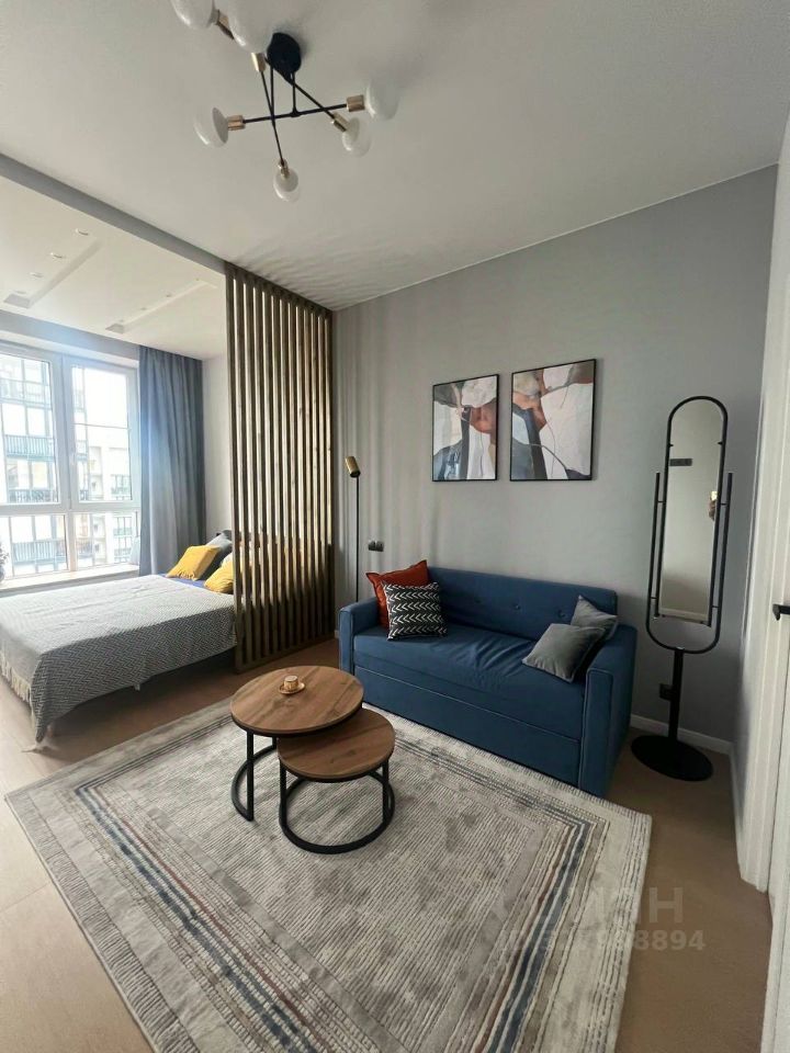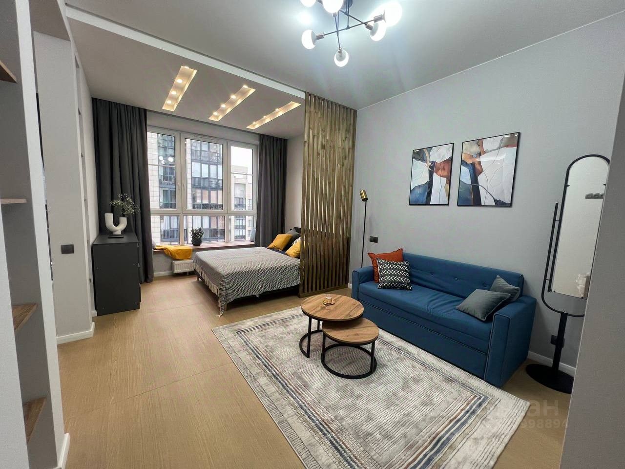 Строго на длительный срок и без питомцев.Между кухней-гостинной и комнатой арка.