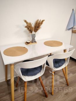 Кухня: холодильник, гарнитур, встроенная плита, качественная мойка и смеситель, стол и стулья с подушками, декор.