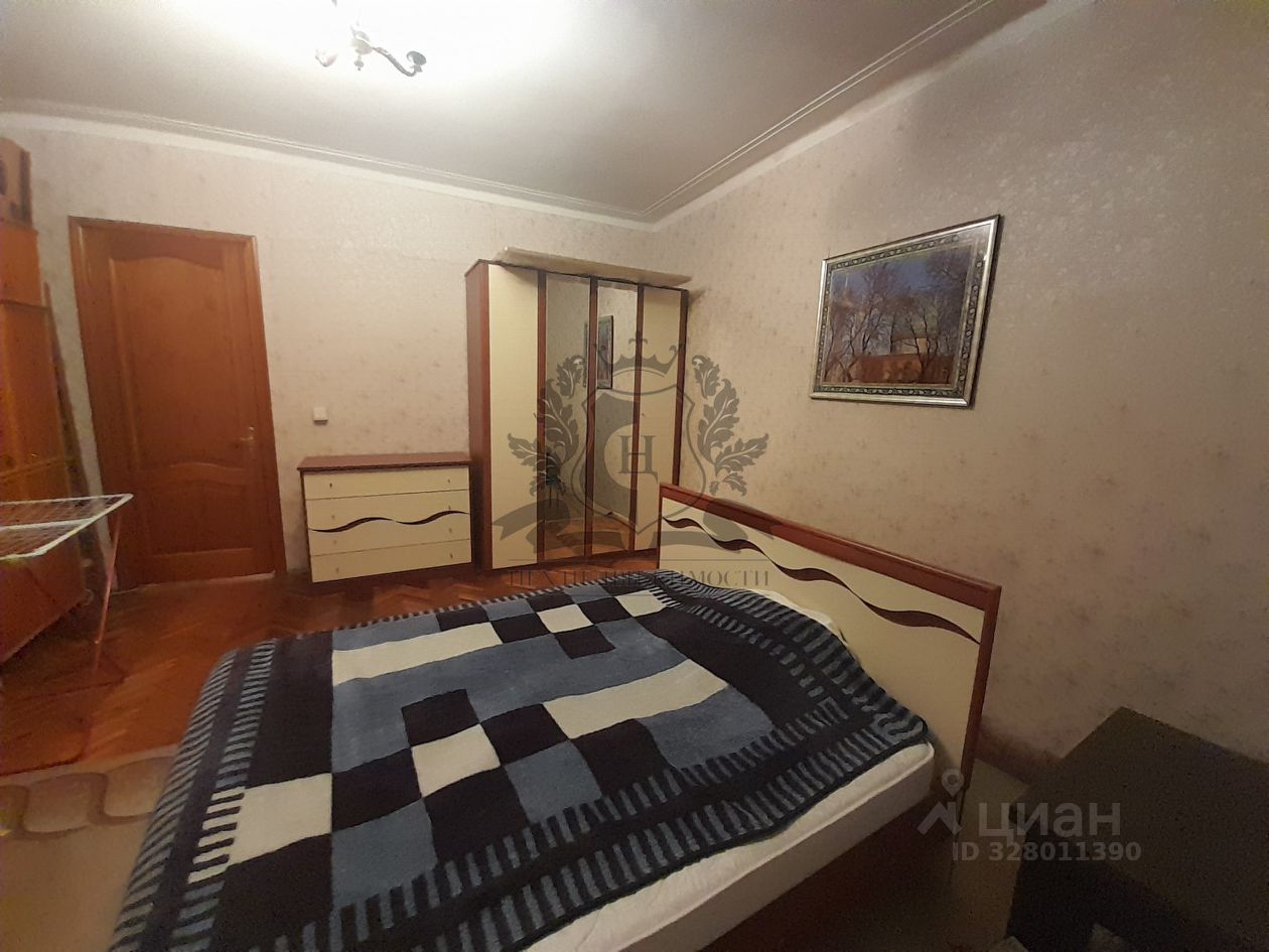 В спальне: кровать двухспальная, шкаф,комод ,столик, выход на балкон ,вид на ул. Чернышевского.