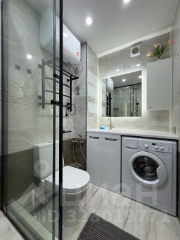 Ванная комната: Душевая кабина. Стиральная машина. Зеркало с подсветкой.
