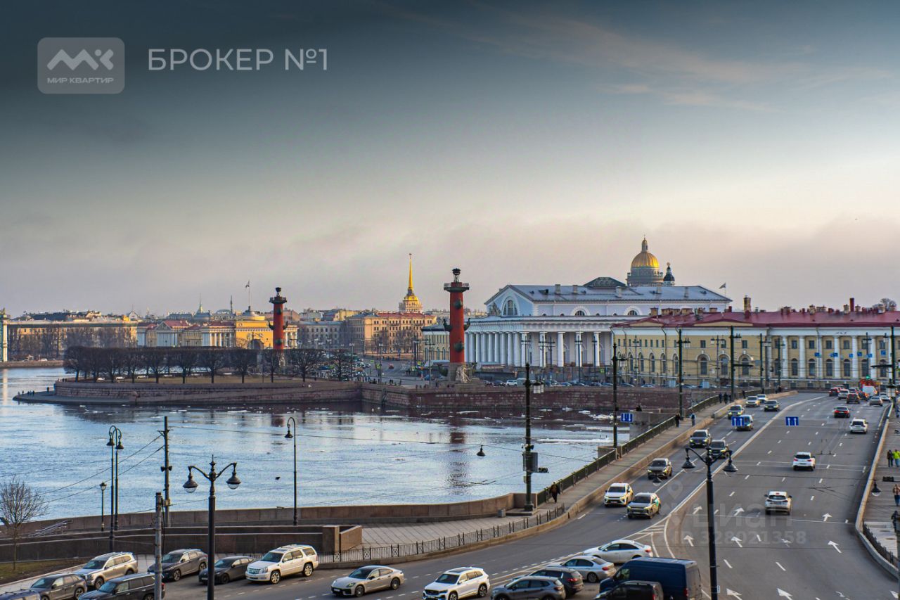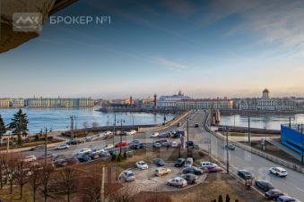 Из окон гостиной открывается потрясающий вид на Биржевой мост, Росстральные колонны, водную гладь Невы и Дворцовую набережную. Окна двух спален и кухни выходят в тихий красивый двор, в котором есть возможность парковать автомобиль. В квартире большое количество мест хранения, есть возможность докупить мебель по запросу клиенту.