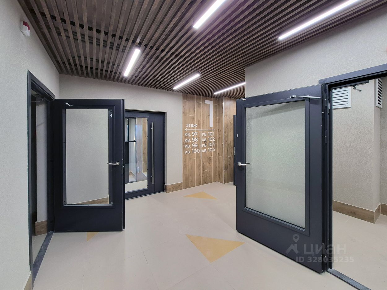 5/9 этаж современного монолитного здания, дом сдан в ноябре 2025 года. Всего две парадные в доме. Парковка авто перед зданием, за шлагбаумом. 100% готовность заезжай и живи.