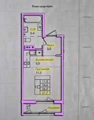 Домофон. Большой грузовой лифт. Приятная входная группа и отделка мест общего пользования. Добротная и надёжная металлическая дверь. Площадь студии 27.7 кв.м. Высокие потолки.