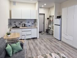 Отделка студии в приятных светлых тонах. Современные материалы. Вся мебель и техника в квартире новая!