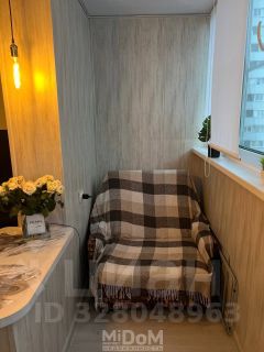 Из кухни сделан выход на утеплённый балкон, подоконник с оборудован, как рабочий стол, над ним сделано уютное освещение. На балконе стоят кресло-кровать и туалетный столик, положен тёплый пол.