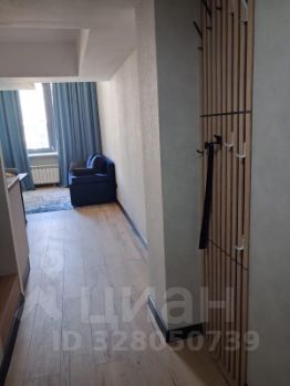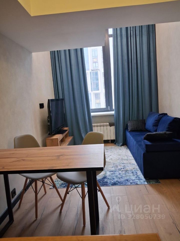 Жилая зона включает в себя комфортный, раскладывающийся диван и телевизор. Из окон открывается вид на город. В спальне удобная кровать и отдельная гардеробная комната.