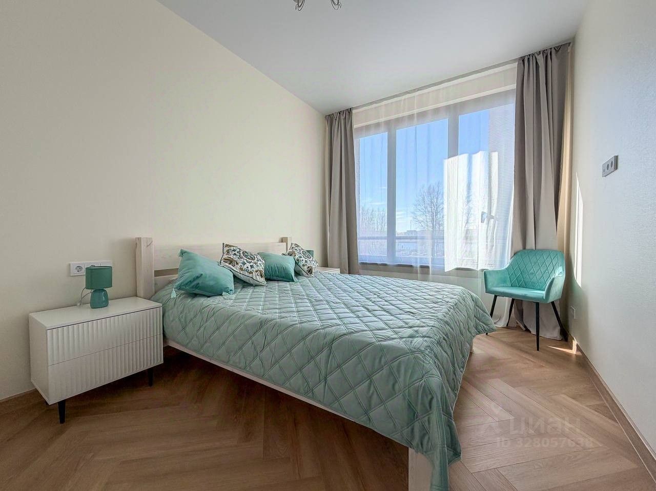 Планировка квартиры: изолированная спальня, просторная кухня-гостиная, совмещенный санузел. Есть вся необходимая мебель и бытовая техника для комфортного проживания, включая посудомоечную машинку и кондиционер. В квартире большие панорамные окна, которые выходят на солнечную сторону - очень много естественного света. Высота потолков - 3 метра. Из окон видно реку!